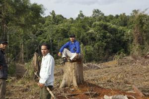 Leaders of Muara Tae community survey the remains of their forest after industrial cutting for a palm oil plantation
